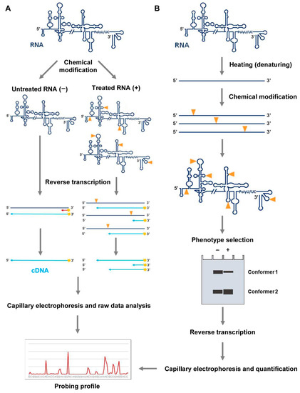 - Mitchell, D., 3rd; Assmann, S.M.; Bevilacqua, P.C. Probing RNA structure in vivo. Curr. Opin. Struct. Biol. 2019, 59, 151–158. [Google Scholar] [CrossRef]