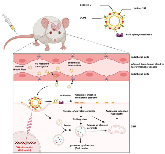 - Davis, H.W.; Vallabhapurapu, S.D.; Chu, Z.; Wyder, M.A.; Greis, K.D.; Fannin, V.; Sun, Y.; Desai, P.B.; Pak, K.Y.; Gray, B.D.; et al. Biotherapy of Brain Tumors with Phosphatidylserine-Targeted Radioiodinated SapC-DOPS Nanovesicles. Cells 2020, 9, 1960. [Google Scholar] [CrossRef] [PubMed]