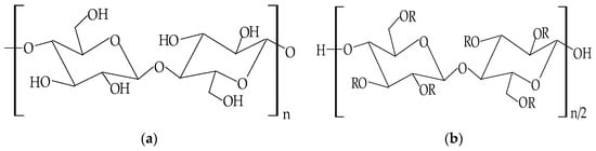 Chemical structures of: (a) cellulose; (b) cellulose derivatives.