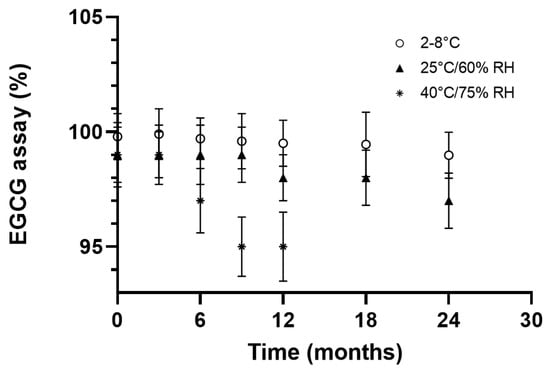 - Xu, Y.-Q.; Yu, P.; Zhou, W. Combined effect of pH and temperature on the stability and antioxidant capacity of epigallocatechin gallate (EGCG) in aqueous system. J. Food Eng. 2019, 250, 46–54. [Google Scholar] [CrossRef]