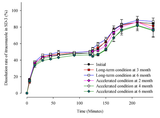 Dissolution profiles of ITZ in SD-3 capsules during the stability test.