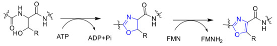 Proposed biosynthetic pathway for 1,3-oxazoles.