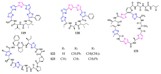 Marine-derived 1,3-oxazole-containing other monocyclic peptides (119–123).