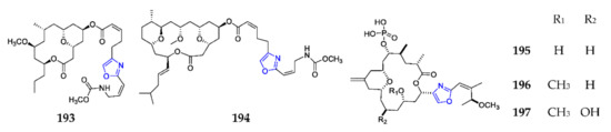 Marine-derived exocyclic oxazoles (193–197).