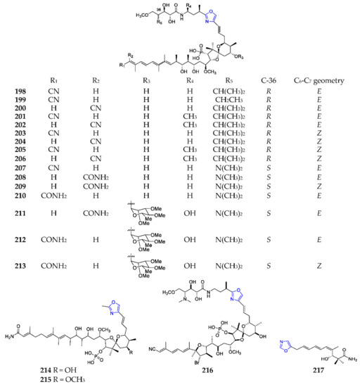 Marine-derived mono-oxazole polyketides (198–217).