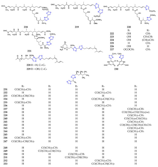Marine-derived dioxazole polyketides (218–253).