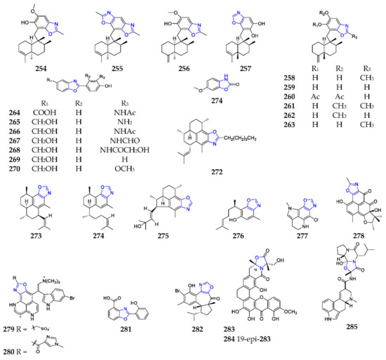 Marine-derived benzoxazoles (254–285).