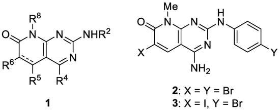 - Galve, I.; Ondoño, R.; de Rocafiguera, C.; Puig de la Bellacasa, R.; Batllori, X.; Puigjaner, C.; Font-Bardia, M.; Vallcorba, O.; Teixidó, J.; Borrell, J.I. A captured room temperature stable Wheland intermediate as a key structure for the orthogonal decoration of 4-amino-pyrido[2,3-d]pyrimidin-7(8H)-ones. Org. Biomol. Chem. 2020, 48, 9810–9815. [Google Scholar] [CrossRef] [PubMed]