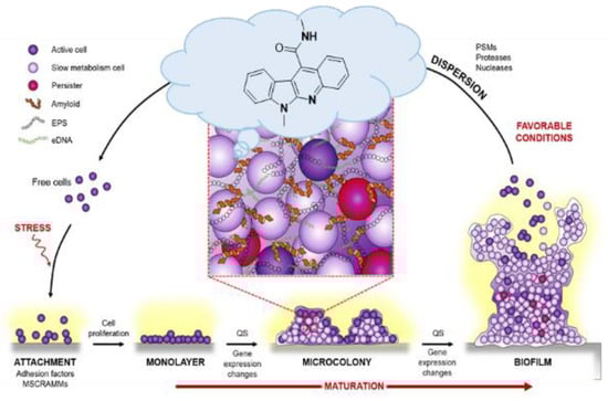 - Davies, D.G.; Parsek, M.R.; Pearson, J.P.; Iglewski, B.H.; Costerton, J.W.; Greenberg, E.P. The involvement of cell-to-cell signals in the development of a bacterial biofilm. Science 1998, 280, 295–298. [Google Scholar] [CrossRef]