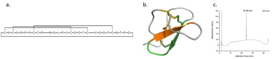 - Cheneval, O.; Schroeder, C.I.; Durek, T.; Walsh, P.; Huang, Y.-H.; Liras, S.; Price, D.A.; Craik, D.J. Fmoc-based synthesis of disulfide-rich cyclic peptides. J. Org. Chem. 2014, 79, 5538–5544. [Google Scholar] [CrossRef]