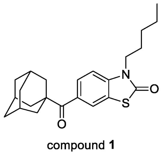 - Leleu-Chavain, N.; Baudelet, D.; Heloire, V.M.; Rocha, D.E.; Renault, N.; Barczyk, A.; Djouina, M.; Body-Malapel, M.; Carato, P.; Millet, R. Benzo[d]thiazol-2(3H)-ones as new potent selective CB2 agonists with anti-inflammatory properties. Eur. J. Med. Chem. 2019, 165, 347–362. [Google Scholar] [CrossRef]