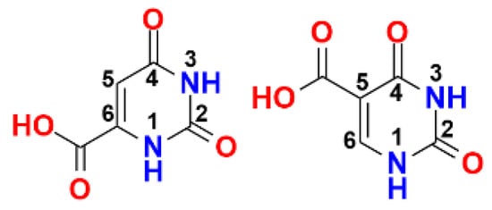- Maistralis, G.; Koutsodimou, A.; Katsaros, N. Transition metal orotic acid complexes. Transit. Met. Chem. 2000, 25, 166–173. [Google Scholar] [CrossRef]
