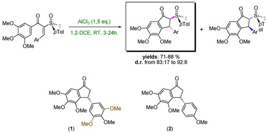 - Grennet, E.; Martinez, J.; Salom-Roig, X.J. Torquoselective Nazarov cyclization mediated by a chiral sulfoxide: First enantioselective synthesis of two known anticancer agents. Asian J. Org. Chem. 2017, 6, 189–198. [Google Scholar] [CrossRef]