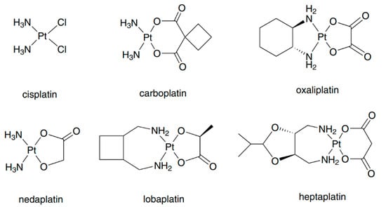 - Boulikas, T.; Vougiouka, M. Cisplatin and platinum drugs at the molecular level. (Review). Oncol. Rep. 2003, 10, 1663–1682. [Google Scholar] [CrossRef]