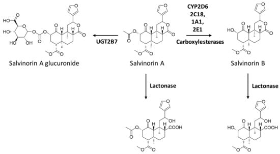 The metabolic pathways of salvinorin A are shown in Figure 3.