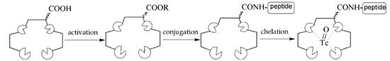 The post-labeling procedure (Figure 6) is the most widely used for a synthesis of target-specific peptide radiopharmaceuticals.