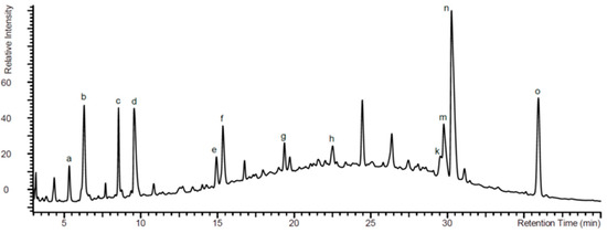 Figure 1 shows a typical HPLC-UV-HRMS profile of EPs® 7630. The chemical structure of the different benzopyranones contained in EPs® 7630 are assigned by small letters (d–o) and the chemical structure analysis is provided in Table 1. More details of the EPs® 7630 constituents were published by others [20,21].
