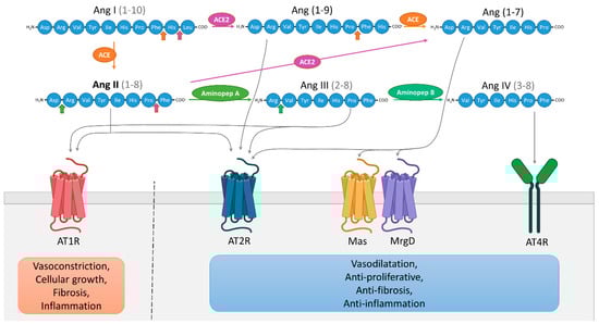 - Matavelli, L.C.; Siragy, H.M. AT2 Receptor Activities and Pathophysiological Implications. J. Cardiovasc. Pharm. 2015, 65, 226–232. [Google Scholar] [CrossRef]