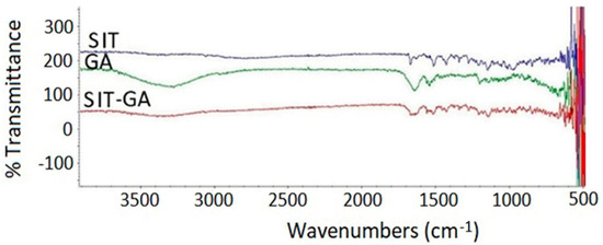 Fourier-transform infrared (FTIR) spectra of SIT, GA, and a SIT-GA nano-complex.