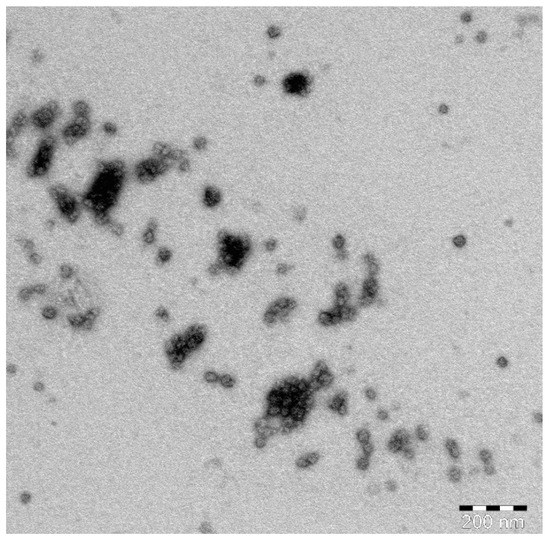TEM images of the optimized SIT-GA nano-conjugates showed an almost spherical structure with some aggregates that could be resulted from the drying process during the preparation of the sample (Figure 5).
