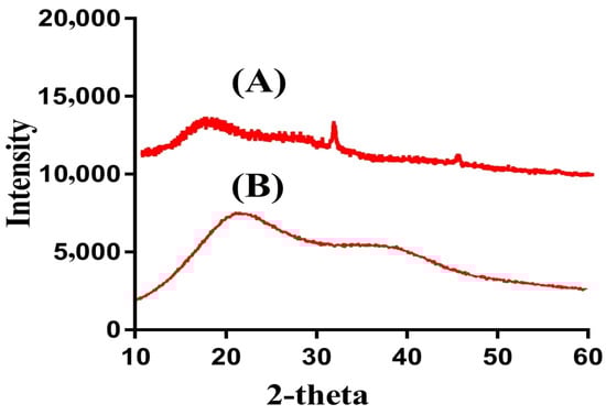 Powder X-ray diffraction (PXRD) of (A) SPS, (B) SPSPAA hydrogel.