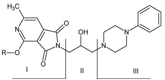 - Sladowska, H.; Sabiniarz, A.; Szkatula, D.; Filipek, B.; Sapa, J. Synthesis and Properties of 4-Alkoxy-2-[2-Hydroxy-3-(4-o,m,p-Halogenoaryl-1-Piperazinyl)Propyl]-6-Methyl-1H-Pyrrolo-[3,4-c]Pyridine-1,3(2H)-Diones with Analgesic and Sedative Activities. Acta Pol. Pharm. 2006, 63, 245–254. [Google Scholar]