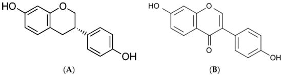 Chemical structures of (A) daidzein and (B) equol (https://pubchem.ncbi.nlm.nih.gov/ (accessed on 16 April 2021)).
