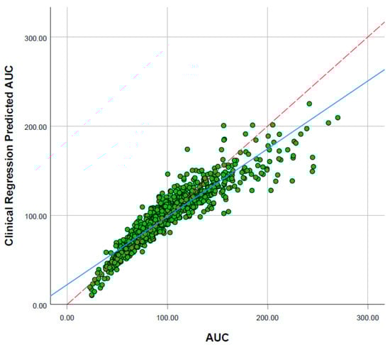 Associations between physiological and molecular characteristics and sorafenib log transformed AUC and Cmax were evaluated by univariate and multivariate linear regression. Continuous variables were checked for normality and non-linearity of association, sex was coded as a binary variable. A multivariable linear regression model to predict the log transformed sorafenib Cmax was developed by stepwise forward inclusion of individually significant characteristics identified in the univariable regression analysis based on a probability of F to enter ≤ 0.05. The multivariable model (MIDS) predicted Cmax was determined by back transformation of the model predicted log transformed Cmax. The capacity of MIDS to identify subjects with a sub-therapeutic simulated sorafenib Cmax determined by scaling the reported threshold for simulation accuracy was evaluated using classification matrix analysis and is summarised as model sensitivity and specificity. The predictive performance of MIDS was assessed by receiver operating characteristic curve (ROC) analysis. Statistical analysis was conducted using R version 4.0.2 and IBM SPSS Statistics for Windows version 23 (Release 2015, IBM, Armonk, NY, USA).