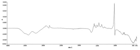 ATR FT-IR spectrum of DS methanolic solution (20 g/L) after taking a methanol spectrum as background spectrum (abscissa units: wavenumber (cm−1); ordinate units: absorbance).