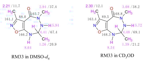 2.1.2. Theoretical Prediction of Chemical Shifts of 1H NMR and 13C NMR Spectra of RM33