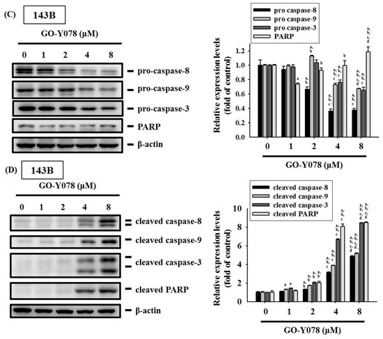 2.3. GO-Y078 Increases Cleaved Caspase 3 and Decreases cIAP-1 and XIAP in U2OS and 143B Cells