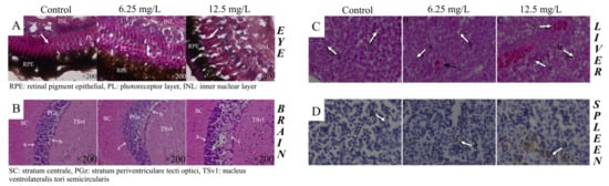 - Ni, H.; Peng, L.; Gao, X.; Ji, H.; Ma, J.; Li, Y.; Jiang, S. Effects of maduramicin on adult zebrafish (Danio rerio): Acute toxicity, tissue damage and oxidative stress. Ecotoxicol. Environ. Saf. 2019, 168, 249–259. [Google Scholar] [CrossRef] [PubMed]