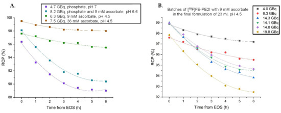 | Radiochemical purity after 6 h (end of the shelf life) | ≥ 90% | HPLC with a radiodetector |