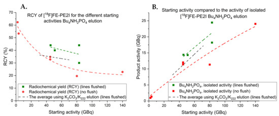 - Berridge, M.S.; Apana, S.M.; Hersha, J.M. Teflon radiolysis as the major source of carrier in fluorine-18. J. Label. Compd. Radiopharm. 2009, 52, 543–548. [Google Scholar] [CrossRef]
