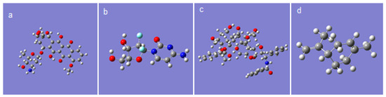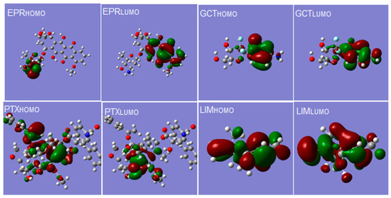 In order to complete the information obtained from the experiments, a theoretical study was performed on the interactions between the studied chemotherapeutics and limonene, this being the majority component from orange essential oil. The molecular structures of limonene and the drugs shown in Figure 5 were obtained, and various structural descriptors that can provide information on the chemical activity and a possible biological response of the studied compounds were computed.