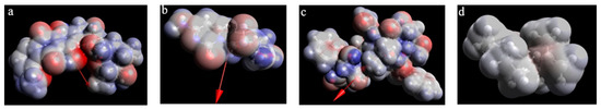 The energy gap between the HOMO and LUMO levels (ΔE = ELUMO − EHOMO) is also a chemically important molecular descriptor showing the molecule stability, its low values being specific to soft molecules, with high chemical reactivity [46]. Frontier orbitals, HOMO and LUMO of the studied compounds are presented in Figure 6 and molecular descriptors are shown in Table 4.