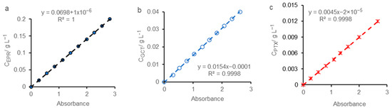 Additionally, a suitable kinetic pattern can be applied to GCT decomposition reactions (Figure 4c,d). The absorbance declines over time, in all the three media, changing its linear decrease tendency for GCT decomposition in HCl blank solution and in SE (Figure 4c) with the exponential trend for GCT decomposition in ESO. Thus, a zero-order kinetics was designed for the specific electrodegradation reactions in HCl blank solution and in HCl solution containing ethanol (Figure 4c). In contrast, the presence of essential oil leads to a change in the kinetics from zero to the first-order reaction (Figure 4d) indicating a deeper retardation of the GCT decomposition reaction. However, some additional explanations are needed involving more in-depth discussions. It should be noted that, by applying a kinetic model afferent to the zero-order reactions (Figure 4d—line 3), the coefficient R2 is lower than in the previous case, and the initial absorbance value is further away from the experimental one (Figure 4d—Equation (3)).