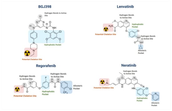 - Guagnano, V.; Furet, P.; Spanka, C.; Bordas, V.; Le Douget, M.; Stamm, C.; Brueggen, J.; Jensen, M.R.; Schnell, C.; Schmid, H.; et al. Discovery of 3-(2,6-dichloro-3,5-dimethoxy-phenyl)-1-{6-[4-(4-ethyl-piperazin-1-yl)-phenylamino]-pyrimidin-4-yl}-1-methyl-urea (NVP-BGJ398), a potent and selective inhibitor of the fibroblast growth factor receptor family of receptor tyrosine kinase. J. Med. Chem. 2011, 54, 7066–7083. [Google Scholar] [CrossRef]