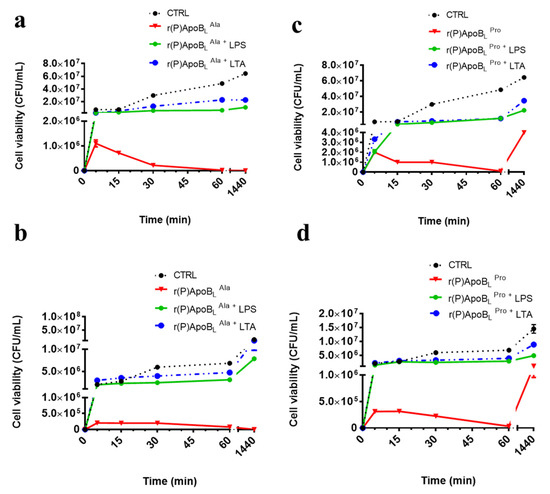 2.2. Evaluation of the Effects of Pro → Ala Single Point Mutation on the Antimicrobial Activity of r(P)ApoBL Peptide