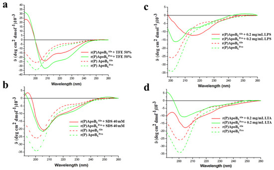 2.6. Evaluation of the Effects of Pro → Ala Single Point Mutation on r(P)ApoBL Conformation by Far-UV Circular Dichroism Analyses