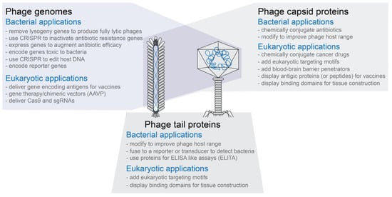 Given these advantages, it is not surprising that phages are being used as therapeutic agents for a wide variety of both bacterial and eukaryotic related applications. In this overview article to this special issue of Pharmaceuticals, we briefly describe many of these applications. More details can be found in the other articles within this issue.