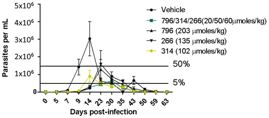 | Full control of the parasitemia in vivo at 50 mg/kg in the murine model of Chagas disease | |||