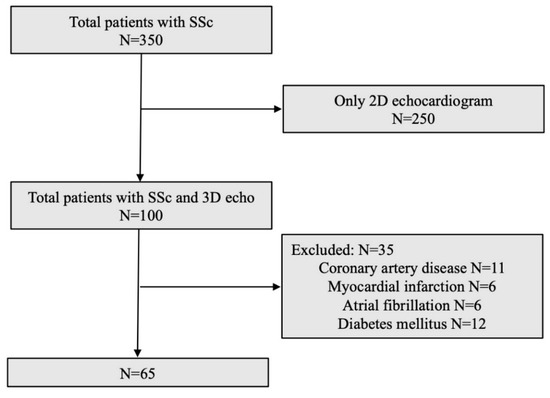 Among the 350 patients, only those patients who were evaluated by 3DE were included (Figure 6). All patients were affected with SSc according to ACR/EULAR classification criteria [24].