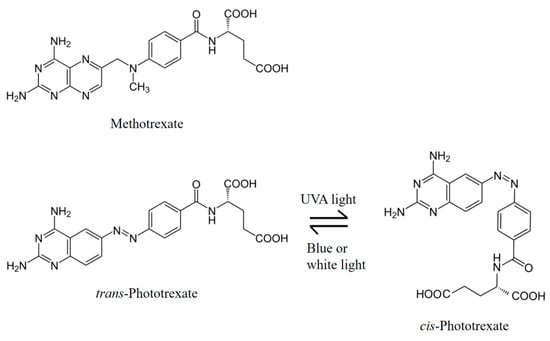 - Mulatihan, D.; Guo, T.; Zhao, Y. Azobenzene Photoswitch for Isomerization-Dependent Cancer Therapy via Azo-Combretastatin A4 and Phototrexate. Photochem. Photobiol. 2020, 96, 1163–1168. [Google Scholar] [CrossRef] [PubMed]