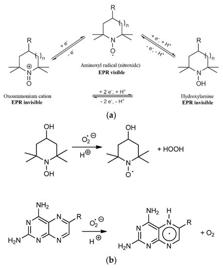 - Babić, N.; Peyrot, F. Molecular Probes for Evaluation of Oxidative Stress by In Vivo EPR Spectroscopy and Imaging: State-of-the-Art and Limitations. Magnetochemistry 2019, 5, 13. [Google Scholar] [CrossRef] [Green Version]