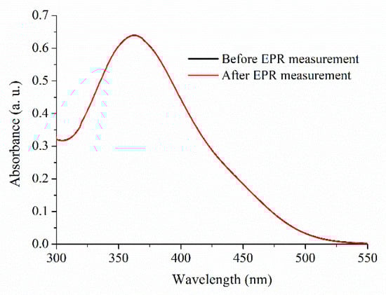 2.1. Absorbance Spectra of Trans-PHX before and after EPR Measurements