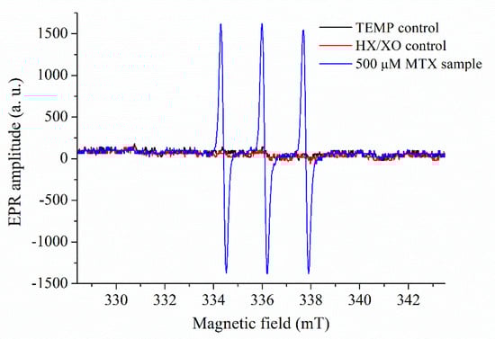 Preisz Z, Hartvig N, Bognár B, Kálai T, Kunsági-Máté S. Comparative EPR Study on the Scavenging Effect of Methotrexate with the Isomers of Its Photoswitchable Derivative. Pharmaceuticals. 2021; 14(7):665. https://doi.org/10.3390/ph14070665