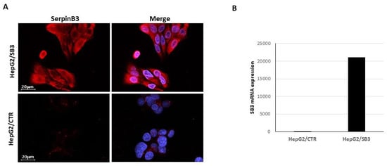 3.1. Characterization of SerpinB3 Expression in Transfected HepG2 Cells