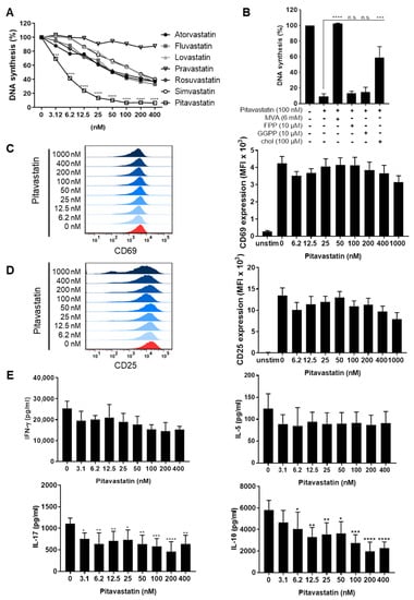 2.1. Pitavastatin Suppresses Proliferation, as Well as IL-10 and IL-17 Production of Freshly Stimulated T Cells, but Shows No Effect on T-Cell Activation