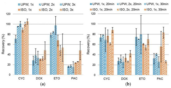 - Guichard, N.; Boccard, J.; Rudaz, S.; Bonnabry, P.; Fleury Souverain, S. Wipe-sampling procedure optimisation for the determination of 23 antineoplastic drugs used in the hospital pharmacy. Eur. J. Hosp. Pharm. 2021, 28, 94–99. [Google Scholar] [CrossRef] [PubMed]